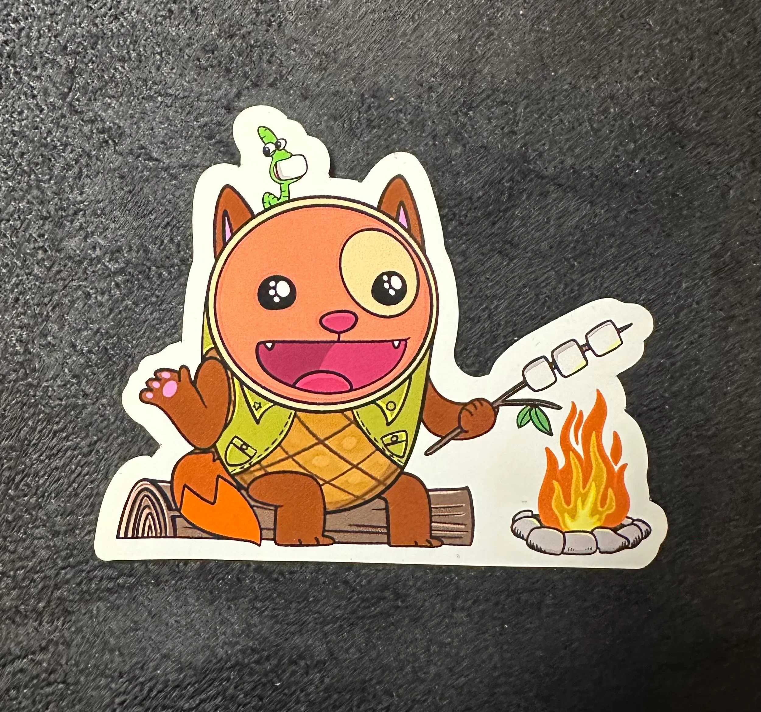 This is an Official Summer HamCat & Rockwell Campfire Marshmallow Flat Magnet. It will brighten any metal surface and make you smile. It’s 3” x 2.5” and has a flat magnet backing.